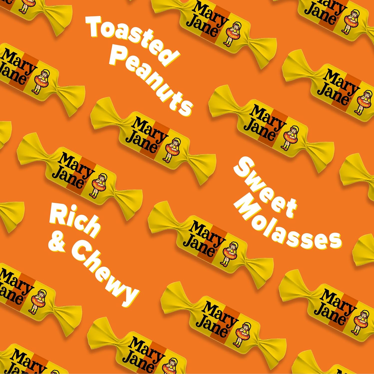 - MARY JANE: The nostalgic flavor of peanuts and molasses is now matched with updated, easy-to-open packaging, making these chewy candies a convenient and delicious treat for any sweet tooth