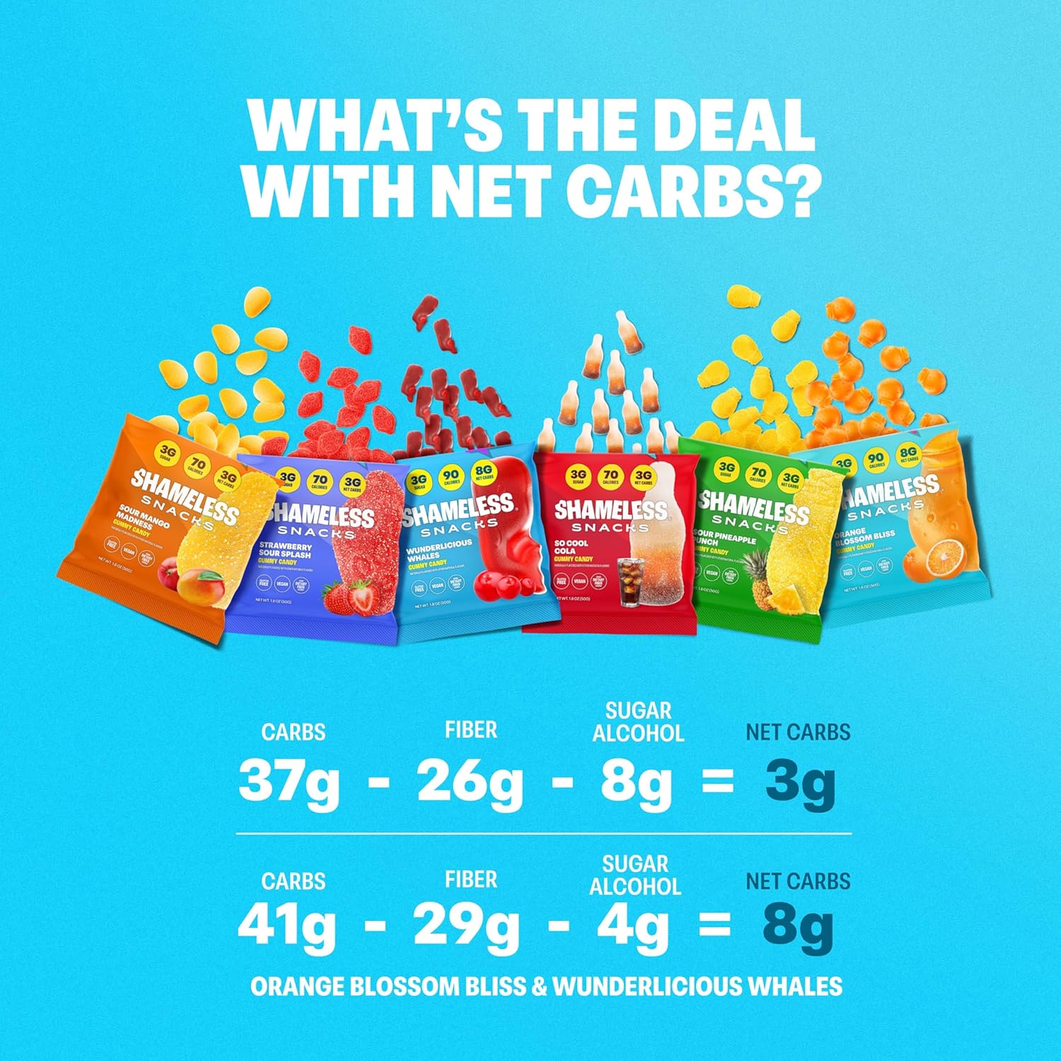 Shameless Snacks Candy Carnival – Healthy Low Sugar Snacks with Pineapple, Mango, Orange, Strawberry & Cola Gummies – Vegan, Gluten-Free, Low-Calorie Candy Variety Pack